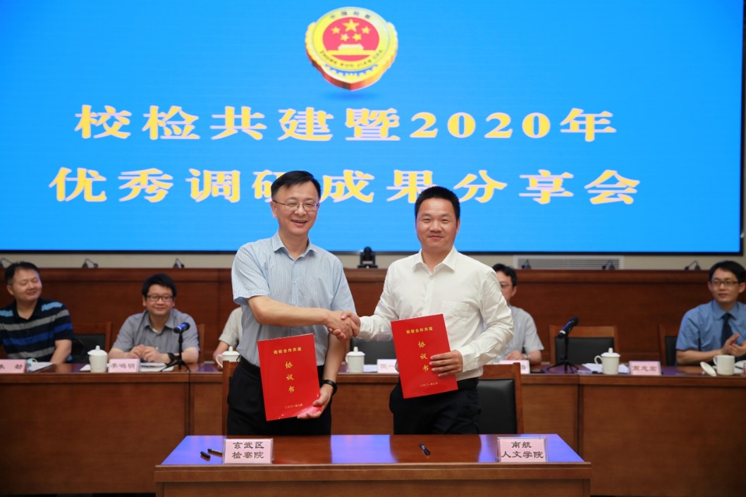 为了进一步加强合作交流,双方续签了检校合作共建协议。签约仪式上,高志宏向玄武区人民检察院全体干警介绍了学院的发展情况和办学特点,总结了双方合作共建取得的成绩与进一步拓展的空间,并就双方在课题申报、法治研究、实践实习、论文撰写等方面的合作提出了意见建议。