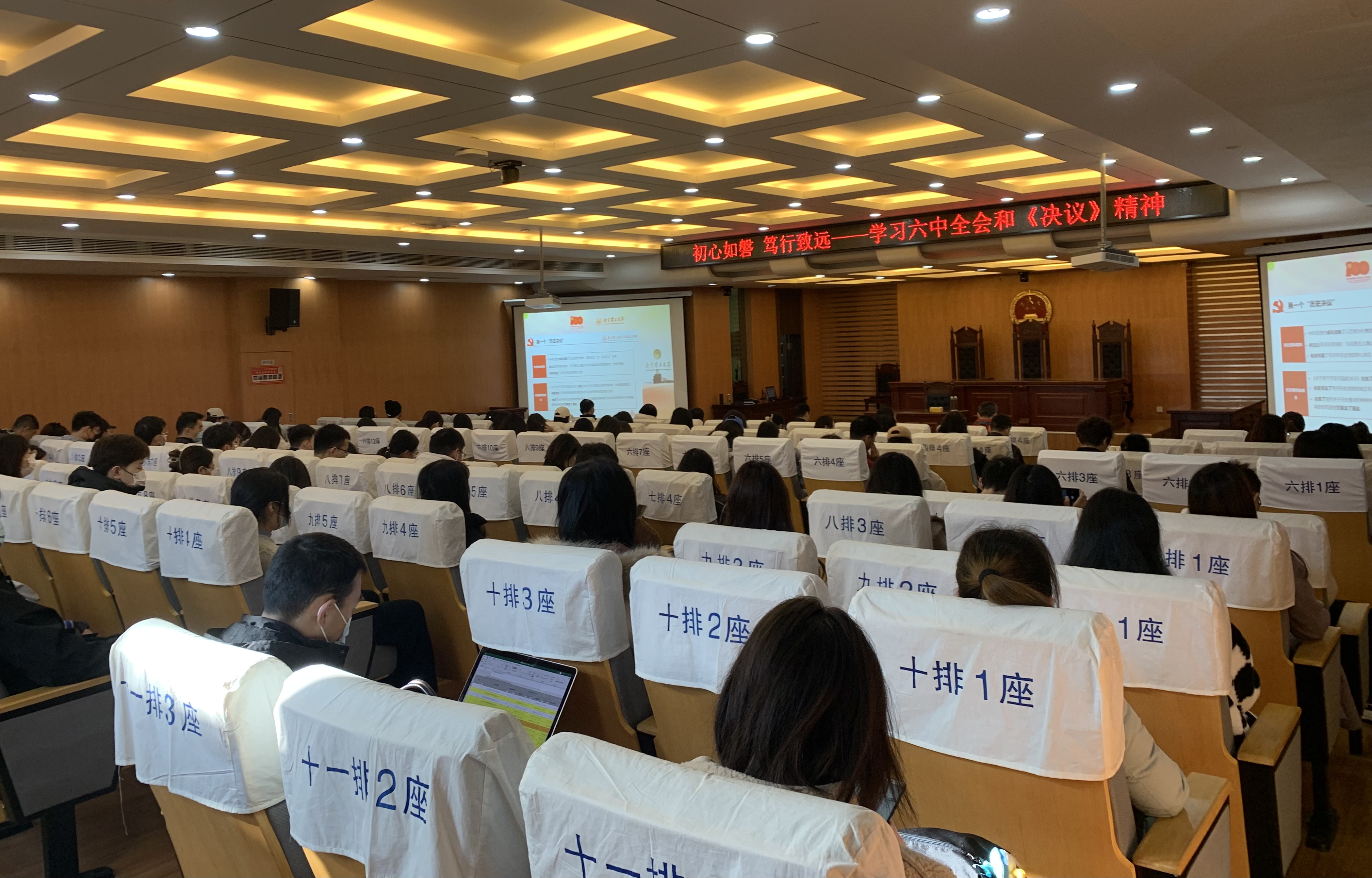 11月24日,禁漫天堂组织全体中层党员领导干部及师生党员、发展对象、积极分子,“青马工程”培训班学员在学院模拟法庭参加了工信部党史学习教育第七巡回指导组专题党课。