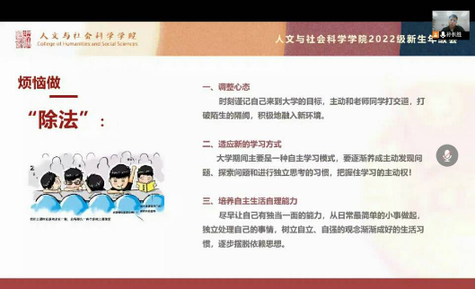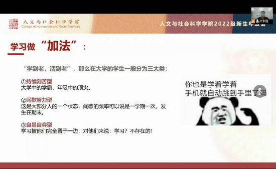 为进一步做好本科生入学教育工作, 9月1日晚,人文学院2022级本科生年级会在线顺利召开,全体2022级本科生参加了会议。