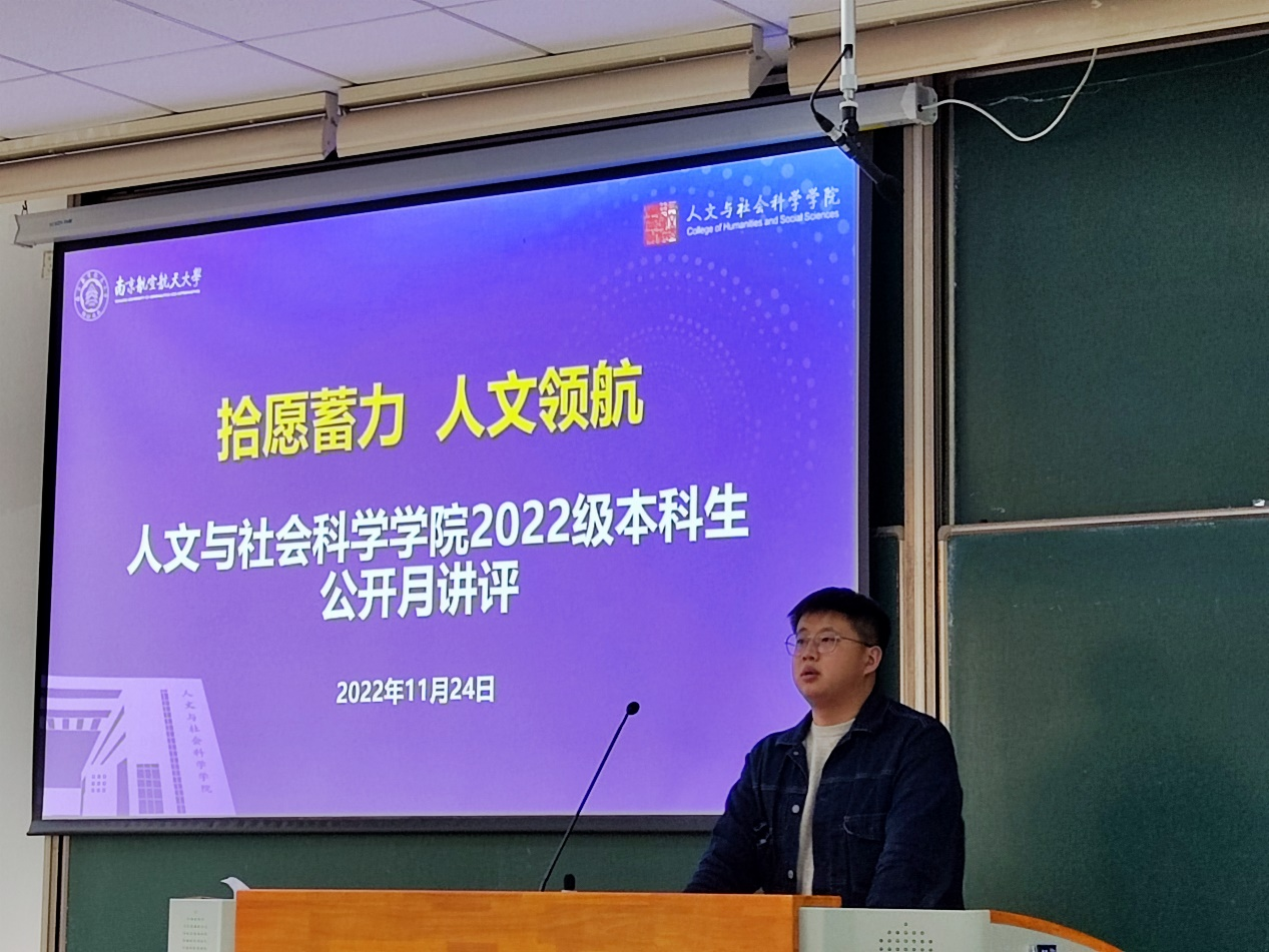 11月24日下午,禁漫天堂 2022级本科生公开月讲评在D1102教室召开,此次公开月讲评的主题是“拾愿蓄力 人文领航”,旨在引领新生坚定理想信念、锤炼自身本领、筑牢能力根基,由2022级本科生辅导员孙长胜担任主讲人,学院2022级全体本科生参加。(作者:孙长胜;供图:李震涛)