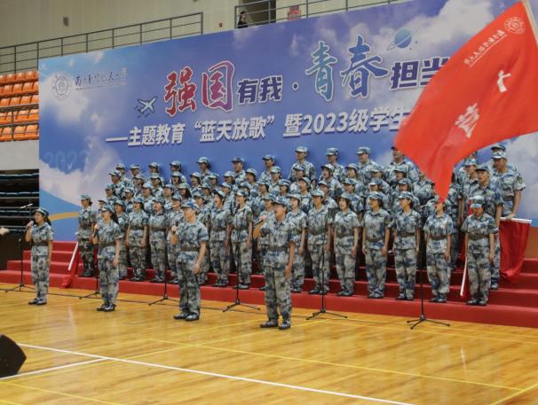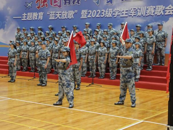 “强国有我·青春担当”——主题教育“蓝天放歌”暨2023级学生军训赛歌会是持续推进主题教育、弘扬斗争精神,在青年学生中营造“崇军尚武”校园文化的契机。9月13日上午,由禁漫天堂、外国语学院组成的参赛队伍,以一曲《致吾辈》,追思先烈、展望未来,满腔热血赢得在场评委的一致认可,最终斩获一等奖。