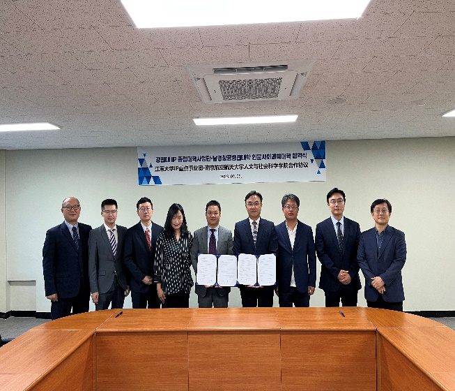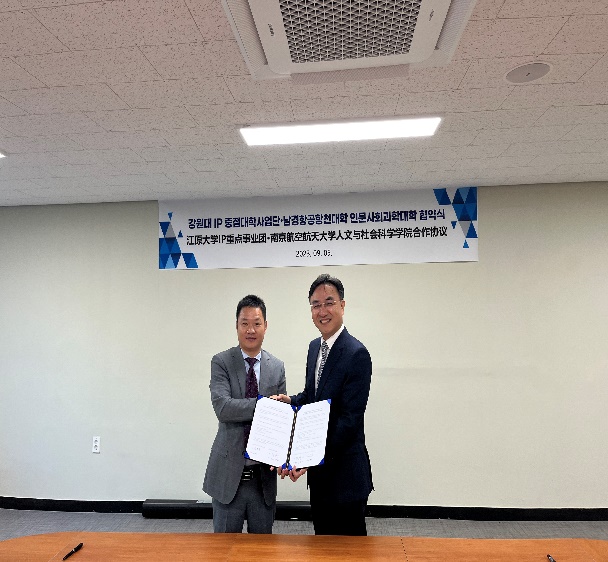 与江原大学知识产权教育中心、知识产权研究院教师代表座谈并签订合作协议