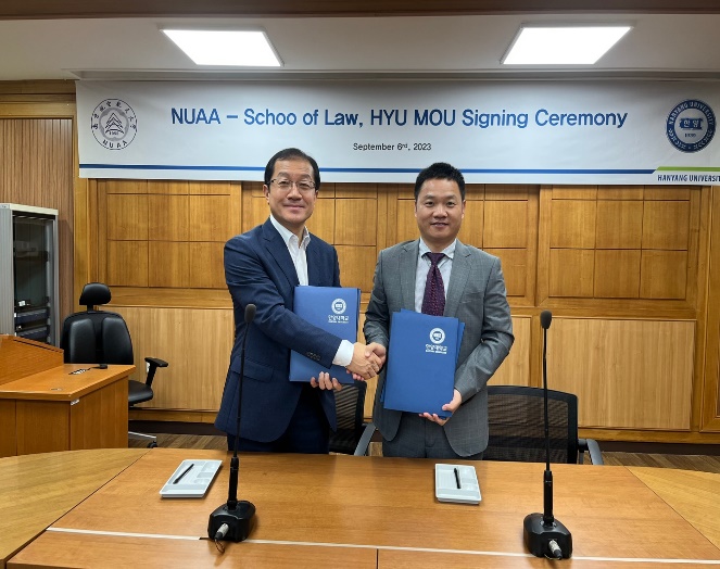 结束国立江原大学访问行程后,高志宏一行访问汉阳大学,参观了韩国立法和行政机构,与法学院院长Lee, Ho Young教授及教师代表开展座谈。双方就彼此学科发展情况及未来合作计划等进行了深入交流并签订了院际框架合作协议。